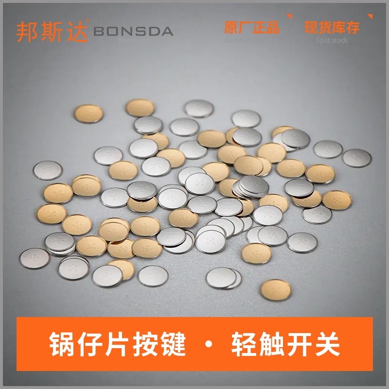 锅仔片(锅仔弹片)是一种金属弹片。从外观上看,它通常是圆形或方形的薄片,中间微微凸起,形状有点像小锅,这也是“锅仔片”名字的由来。在材质方面,一般是由不锈钢、铜合金等金属材料制成。这些材料使得锅仔片具有良好的弹性和导电性。在功能用途上,锅仔片主要应用在电子设备中,例如手机、电子词典、遥控器等。它通常被放置在按键下面,当按下按键时,锅仔片会受力下凹,使电路导通,完成信号的触发。当外力消失后,它凭借自身的弹性恢复原状,电路断开。这样的设计可以实现按键功能,并且能够提供良好的按键手感,让用户在操作电子设备按键时能够得到明确的反馈。